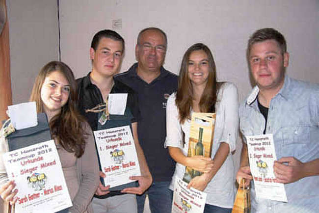 Am 20. und 21. Juli 2012 fanden auf der Tennisanlage des TC Honzrath die diesjährigen internen Clubmeisterschaften statt. Es wurde in der Disziplin Mixed gespielt. Bei überwiegend schönen Wetter und guter Stimmung kämpften die Akteure um die Plätze. Viele spannende Spiele sowie großes Engagement begeisterten die Zuschauer. Im Endspiel standen sich schließlich die Mixed Paare Sarah Gantner mit Marius Minas sowie Maren Lenhof mit Sebastian Hardick gegenüber. Spannender konnte ein Endspiel nicht laufen, so konnten sich am Ende Sarah und Marius die Clubmeisterschaft 2012 sichern. Ganz besonders die Fairness der erfahrenen Spieler gegenüber dem Newcomer lobte Sportwart Norbert Theobald bei der Siegerehrung. Einen harmonischen Ausklang fand die Veranstaltung bei der gut besuchten „Teamcupfete“.