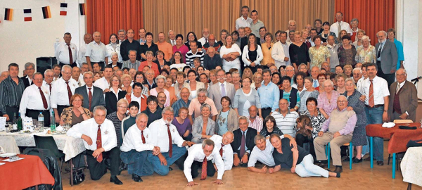 Gaudi pur beim silbernen Jubiläum der Partnerschaft: ein Gruppenbild der Gastgeber und Gäste bei der Feier zum 25-jährigen Bestehen 2010 in La Grande Paroisse.
